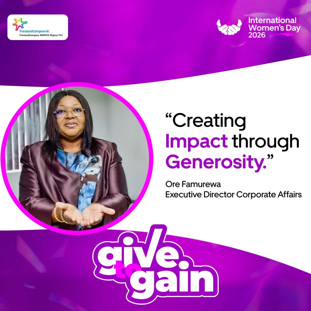 The theme “Give to Gain” deeply resonates with me because it captures a simple truth, when you invest in women and girls, the entire society progresses. Giving through knowledge, mentorship, opportunity, or support creates ripple effects that return as stronger communities, healthier families, and most resilient economies. At FrieslandCampina WAMCO, this spirit aligns with our culture of collaboration, care and empowerment. We believe that creating opportunities for women is not charity; it is strategy. It is how we build sustainable impact and business continuity for our organisation.