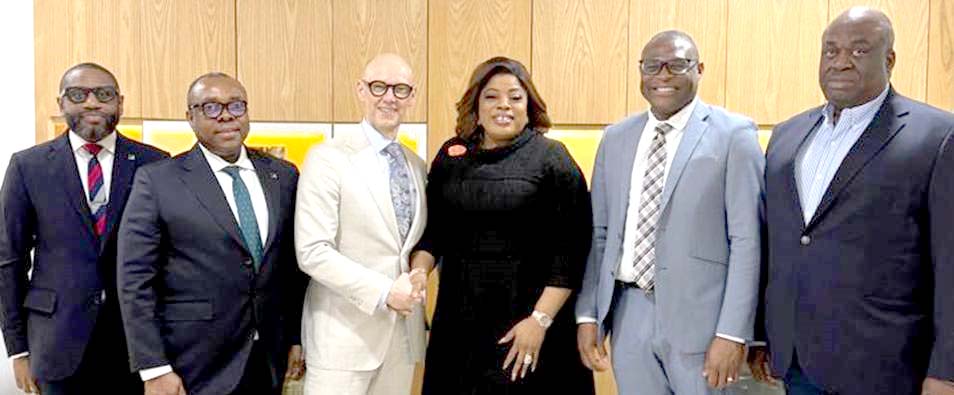 L- R: Mr. Kencho Omojafor, Head, Aviation Desk, Fidelity Bank Plc; Mr. Stanley Amuchie, Executive Director/Chief Operations and Information Officer, Fidelity Bank Plc; Mr. Christian Hatje, Managing Director Business Aviation AFG; Dr. Nneka Onyeali-Ikpe, Managing Director/Chief Executive Officer, Fidelity Bank Plc; Mr. Shiekuma Gemade, Chief Operating Officer, AFG; and Mr. Patrick Azi, Aviation Consultant and Managing Director, 3D Hitec Ltd; at a meeting at the Fidelity Bank headquarters recently.