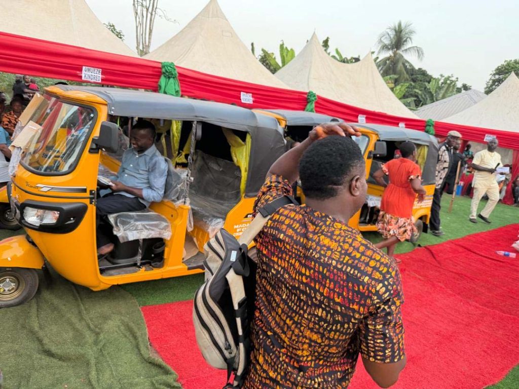 In a bid to reduce hunger, poverty and promote education in rural areas, the management of Touch of Valentine Foundation has given out 500 bags of rice, 1000 cartons of Indomie, 2000 pieces of yam with the sum of N2m cash each for ten people who are not doing anything for start-up. Another 12 youths were handed over tricycles commonly known as keke for transport business to make ends meat in Nnewi, Anambra state.